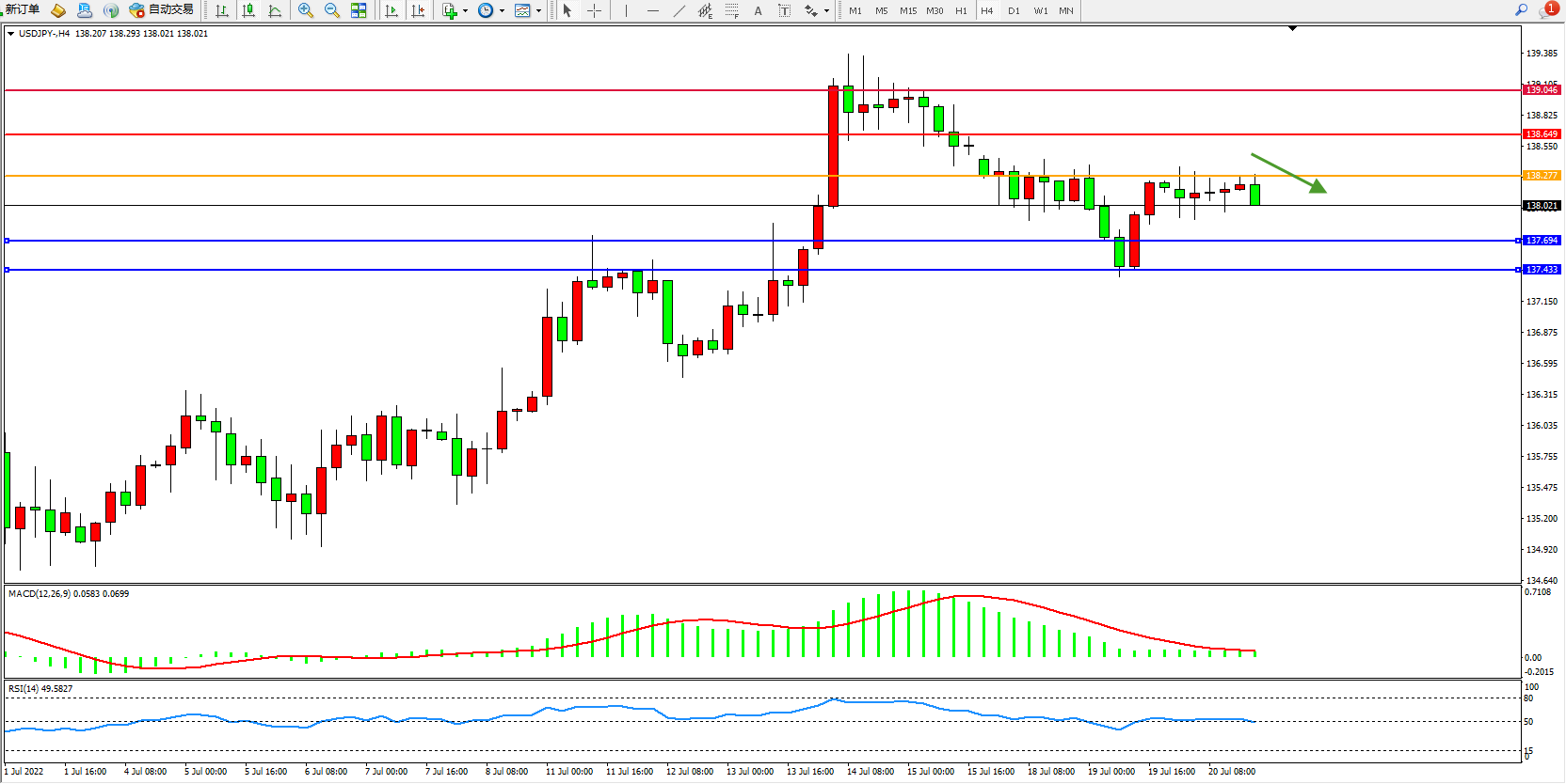 美元兑日圆维持138.021附近震荡,日本进口商从138.00开始有买兴,而升向139.00时出口商有卖兴。料在本月底美联储加息前,汇价会在137-140区间拉锯。
