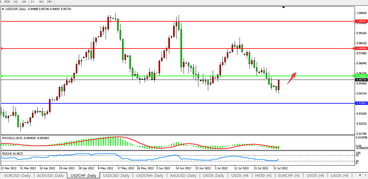 交易策略:0.9600下方看跌,目标0.9400、0.9200