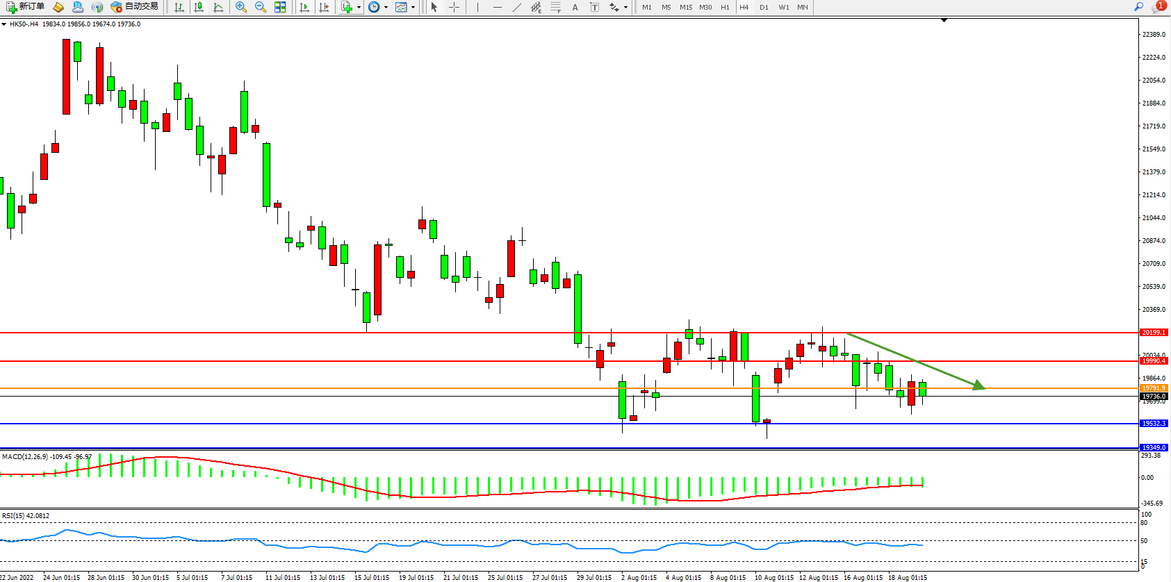 香港恒生指数8月19日(周五)收盘上涨9.12点,涨幅0.05%,报19773.03点;港股三大指数全天呈震荡行情,恒生科技指数微跌0.01%。盘面上,大型科技股走势分化,快手涨4.6%,阿里巴巴长1.42%,腾讯涨约1%,网易绩后大跌超6%表现较差,美团、百度小幅走低;机构指极端高温叠加干旱天气致电力供需形势紧张,电力板块全天领涨,煤炭板块亦大幅拉升;南下资金净流入20.91亿港元,大市成交额为821亿港元。