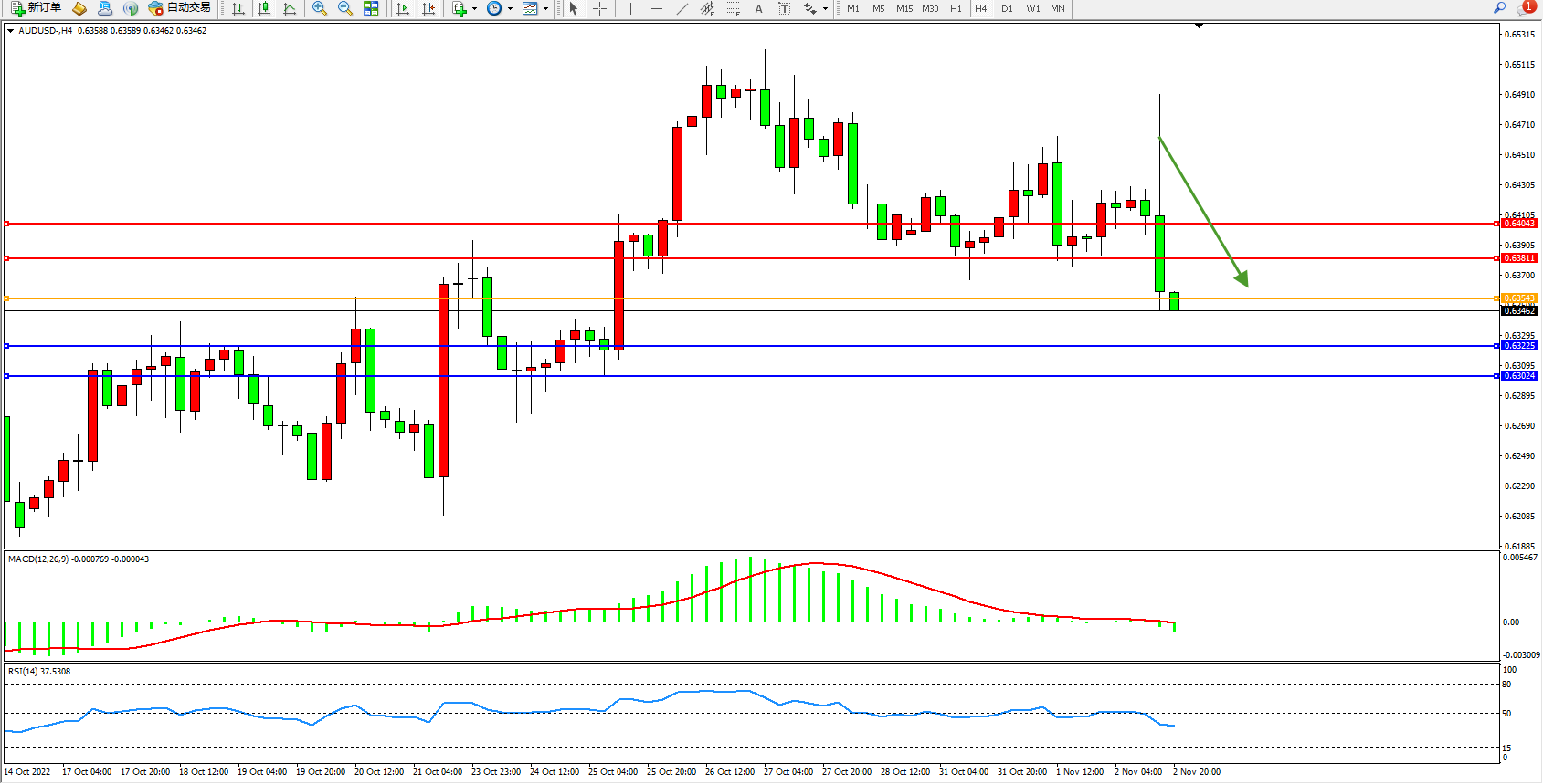 交易策略:0.63543下方看跌,目标0.62225、0.63024