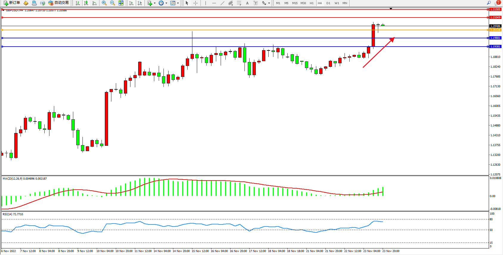 英镑兑美元维持1.20586附近震荡,英国正步入一场漫长但程度较浅的衰退,且消费者面临持续的生活成本危机,但英国央行料将在12月15日将利率上调50个基点至3.50%,此前预计为3.75%。