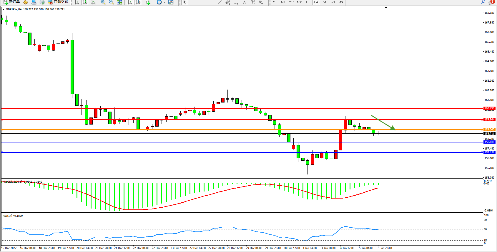 4小时图看:空头动力弱势整理缓慢下行,市场空头情绪开始缓慢入场,MACD指标处于0轴线下侧弱势徘徊,RSI指标处于50均衡线附近弱势整理;