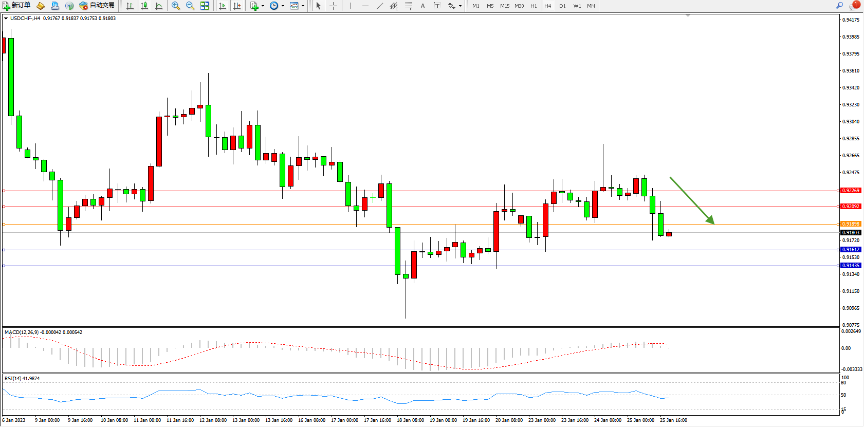 交易策略:0.91898下方看跌,目标0.91612、0.91436