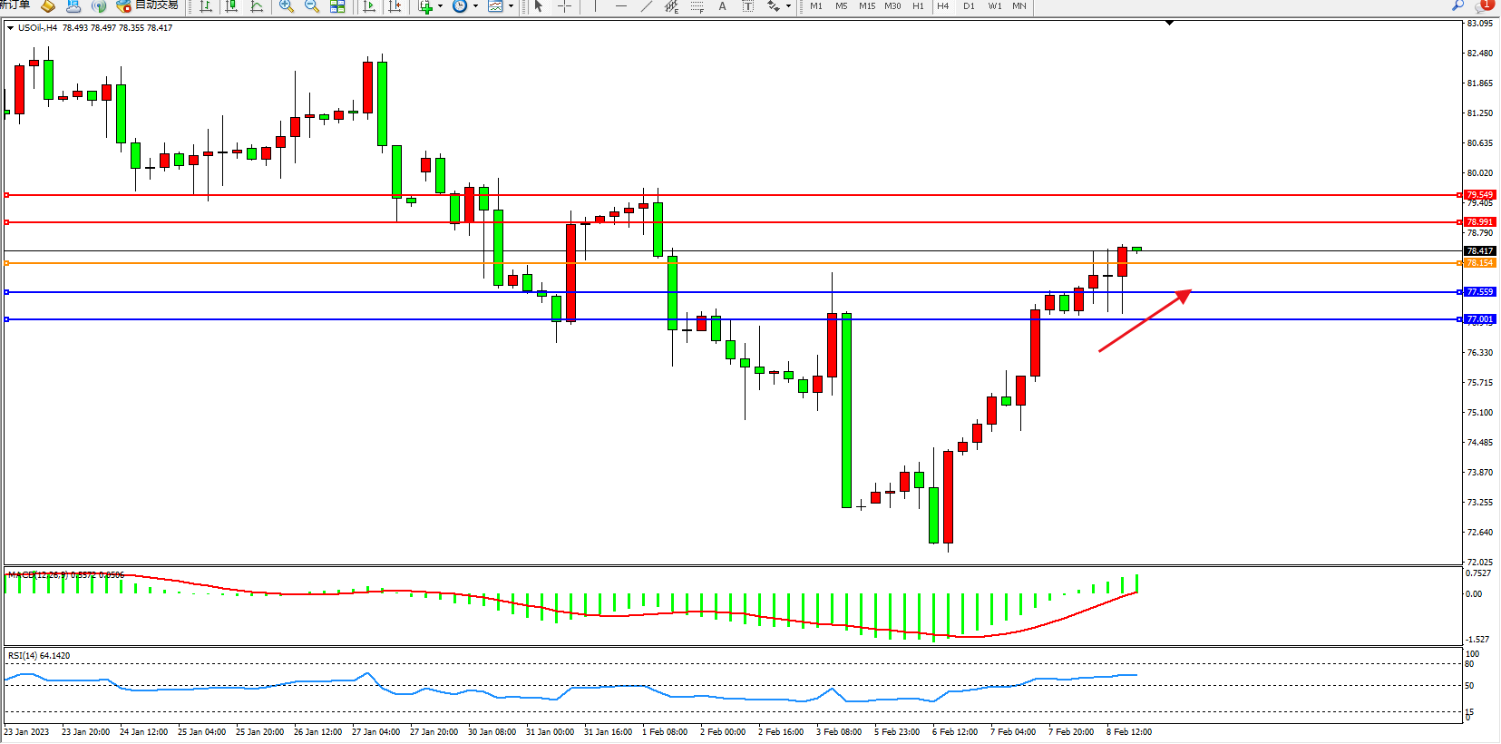 原油维持78.417附近震荡,美国至2月3日当周EIA原油库存 242.3万桶,预期245.7万桶,前值414万桶。俄克拉荷马州库欣原油库存 104.3万桶,前值231.5万桶。