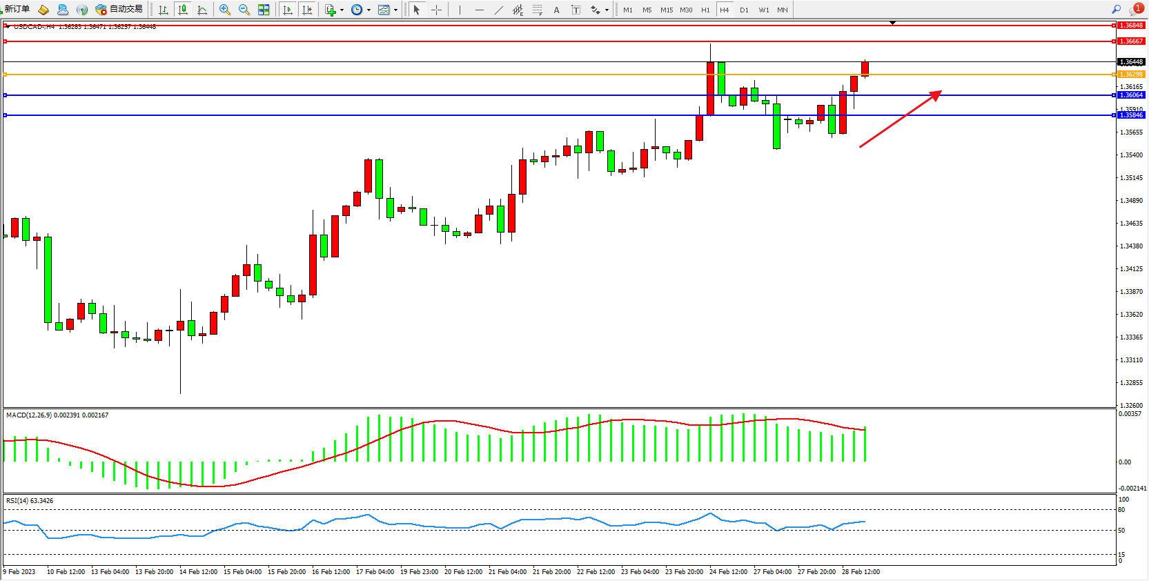 美元兑加元维持1.36446附近震荡,加拿大12月GDP月率 -0.1%,预期0.00%,前值0.10%,为2022年2月以来首次录得经济萎缩。到目前为止,1月和2月的所有迹象都很强劲,这将让加拿大央行下周有所考虑。