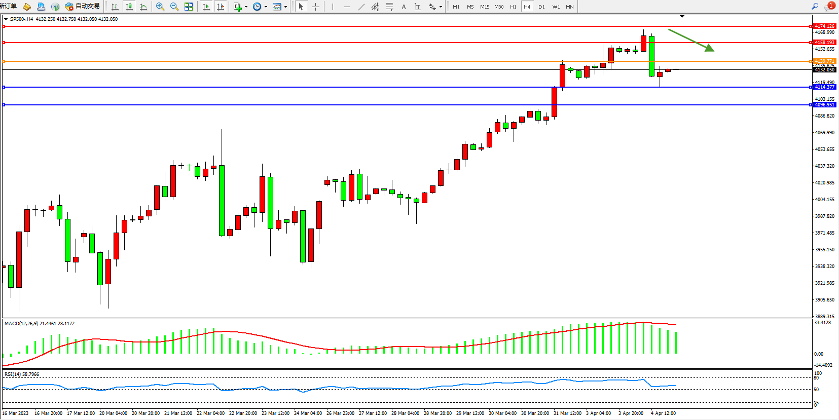 标普500指数4月4日(周二)收盘下跌24.06点,跌幅0.58%,报4100.45点;美联储可能更早降息的观点弥漫市场,也加剧美元看跌前景,美联储利率制定者的鹰派态度逐渐减弱,尤其是自上次FOMC会议以及包括硅谷银行在内的几家中等规模美国贷款机构倒闭后。