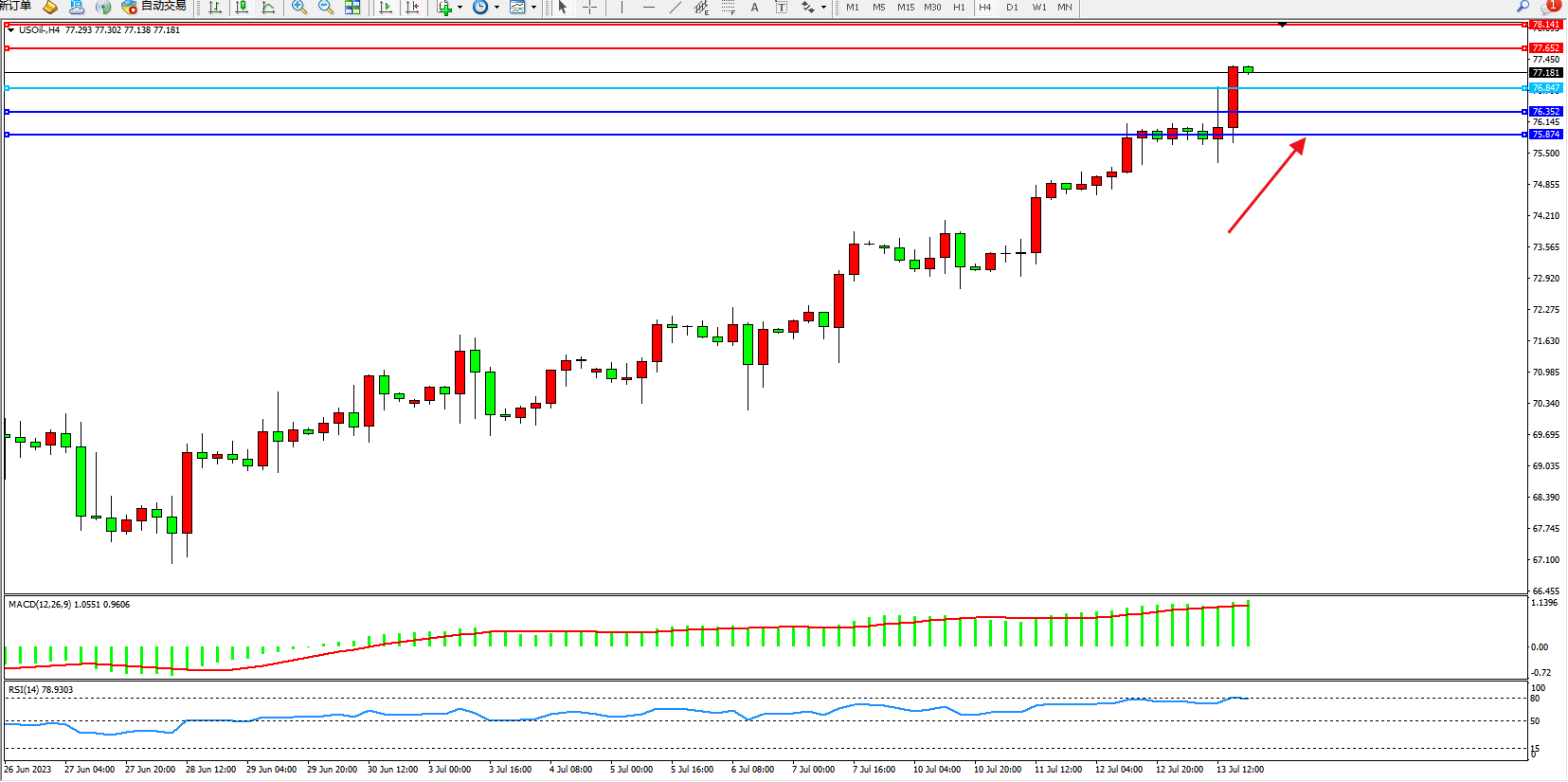 原油维持77.181附近震荡,欧佩克月报:欧佩克+的预防性措施和减产措施为市场增加了稳定性,基于此,预计2023年的“稳固”市场基本面将延续到2024年。