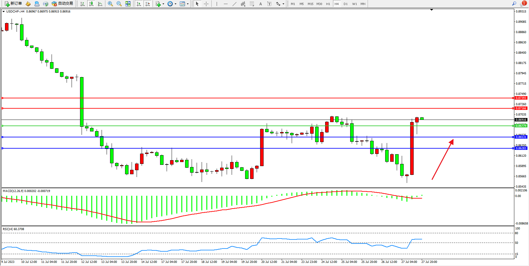 USDCHF:急速拉升 USDCHF  XAUUSD