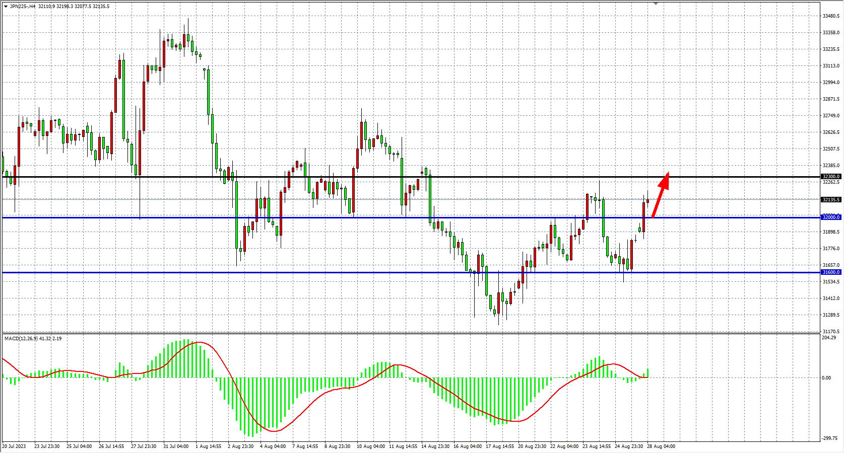 周一(8月28日)日经225指数收盘上涨570.00点,涨幅1.80%