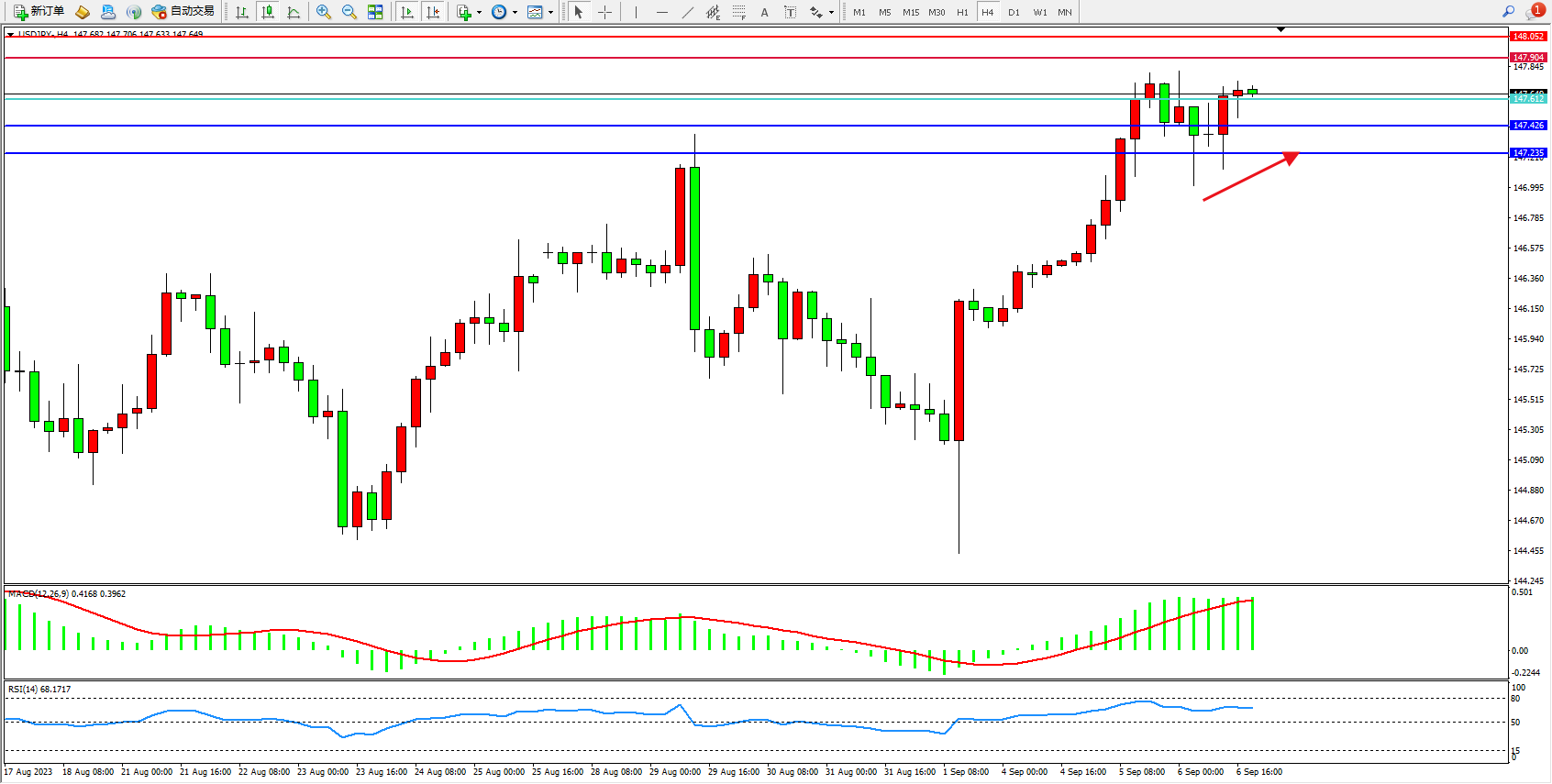 阻力位:147.904  148.052