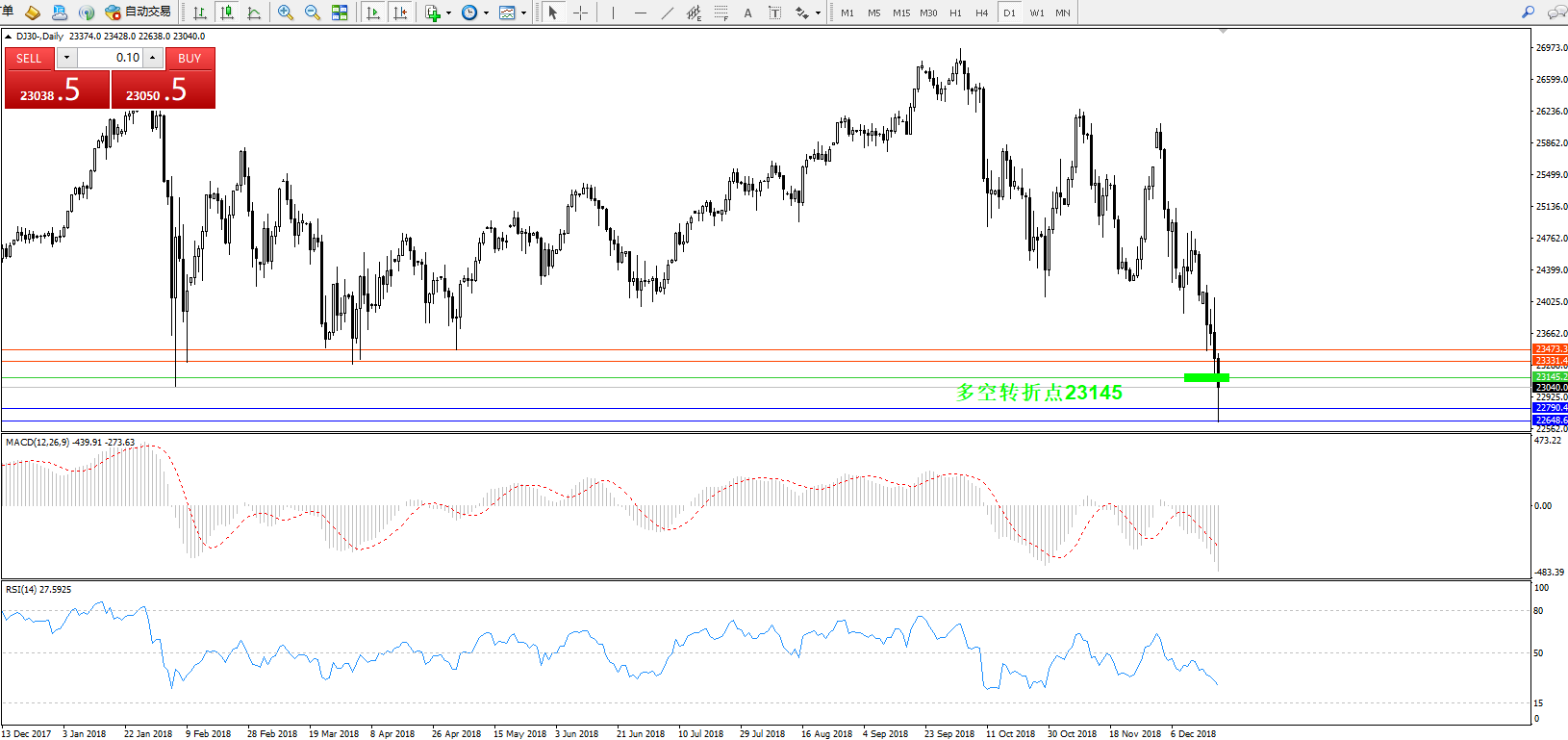 道琼斯指数DJ30—— 日K线图显示: