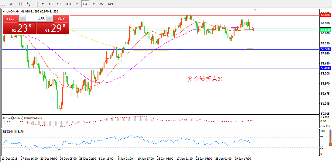 交易策略:在61.00之上看涨,目标63.00 67.00