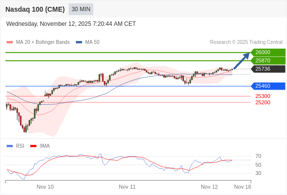 在 25460 之上,看涨,目标价位为 25870 ,然后为 26000 。