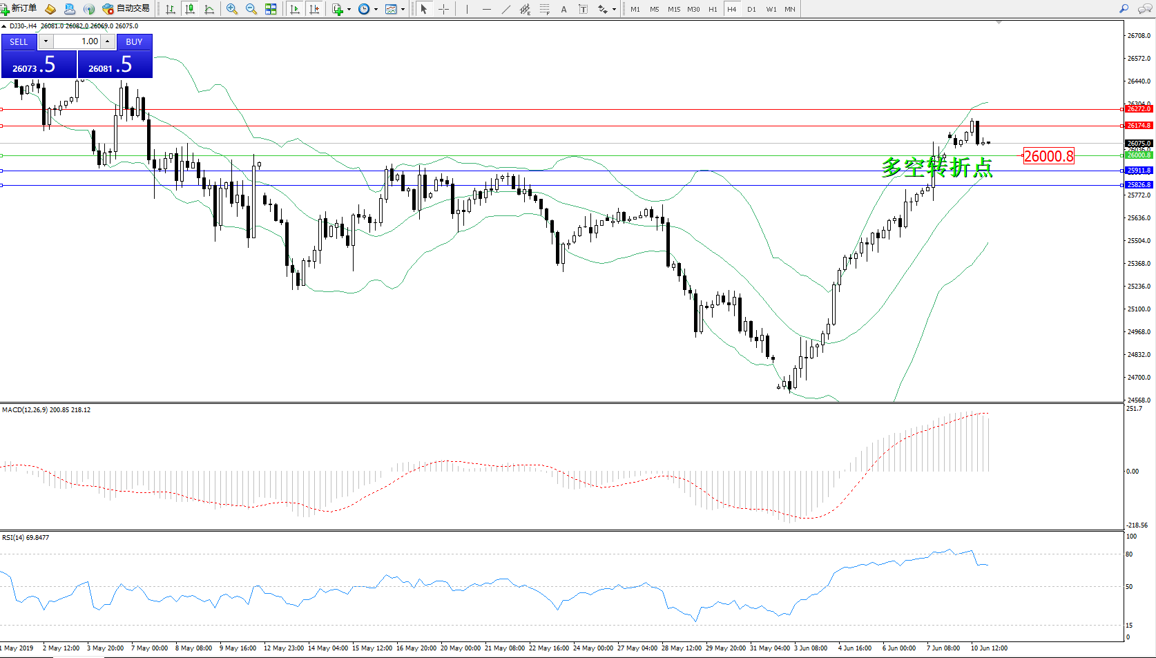 技术点评:V型反转延续布林带上轨持续上攻,高位出现短暂回撤迹象,但上行态势依旧良好,MACD指标多头区域高位窄幅整理,RSI指标多头区域超买区80均衡线下方维持震荡;