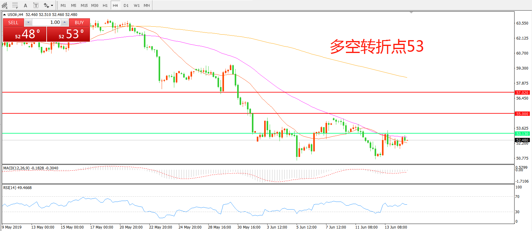 交易策略:在53.00之下看跌,目标50.00    46.00