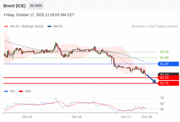 在 61.30 之下,看跌,目标价位为 60.20 ,然后为 59.75 。