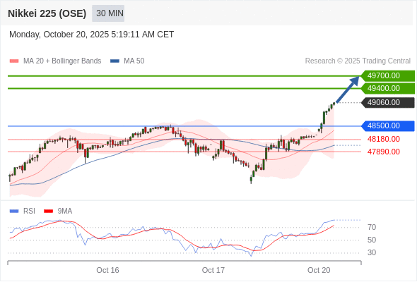 交易策略: 在 48500.00 之上,看涨,目标价位为 49400.00 ,然后为 49700.00 。