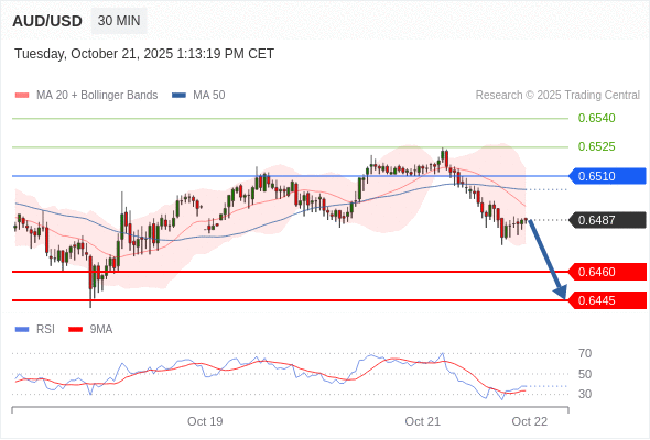 在 0.6510 之下,看跌,目标价位为 0.6460 ,然后为 0.6445 。