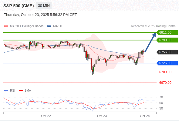 在 6725.00 之上,看涨,目标价位为 6790.00 ,然后为 6811.00 。
