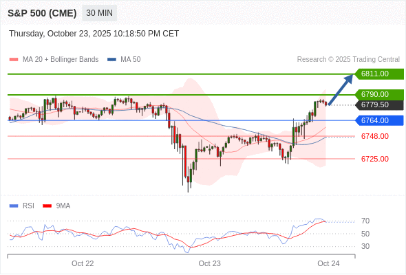 在 6764.00 之上,看涨,目标价位为 6790.00 ,然后为 6811.00 。
