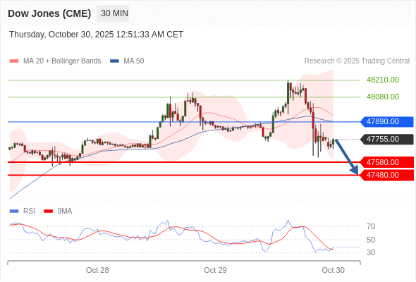 在 47890.00 之下,看跌,目标价位为 47580.00 ,然后为 47480.00 。