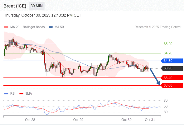 交易策略: 在 64.30 之下,看跌,目标价位为 63.40 ,然后为 63.00 。