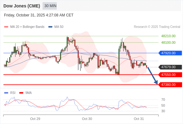 交易策略: 在 47920.00 之下,看跌,目标价位为 47550.00 ,然后为 47380.00 。