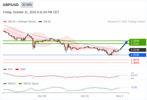 英镑/美元 当日内 : 看涨。