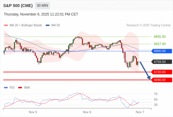 在 6800.00 之下,看跌,目标价位为 6720.00 ,然后为 6690.00 。