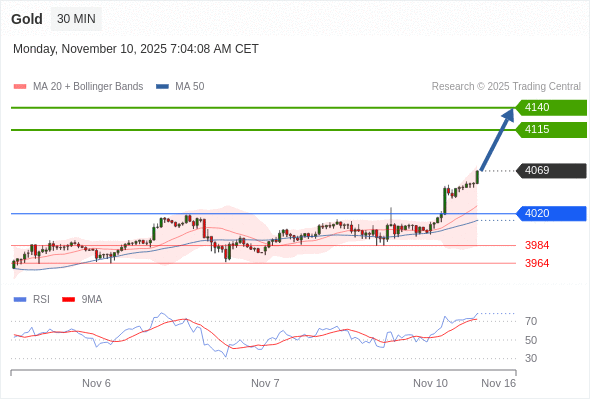 在 4020 之上,看涨,目标价位为 4115 ,然后为 4140 。