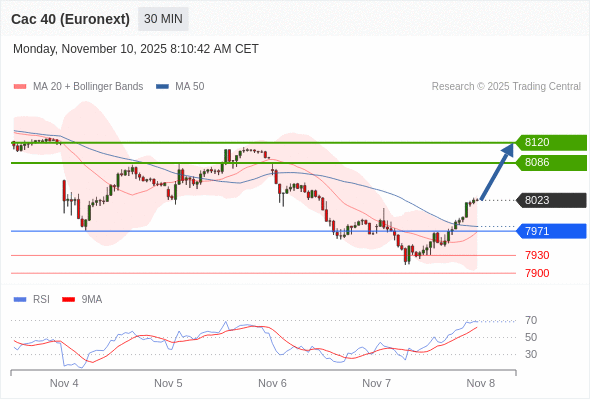 在 7971 之上,看涨,目标价位为 8086 ,然后为 8120 。