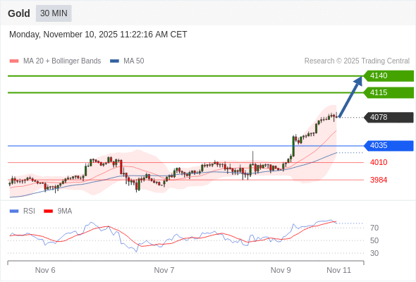 在 4035 之上,看涨,目标价位为 4115 ,然后为 4140 。