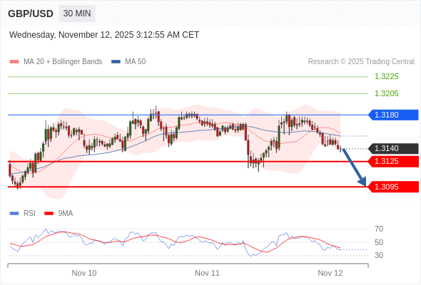 在 1.3180 之下,看跌,目标价位为 1.3125 ,然后为 1.3095 。