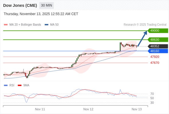 在 48160 之上,看涨,目标价位为 48630 ,然后为 49000 。