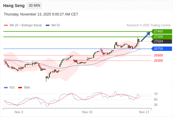 在 26750 之上,看涨,目标价位为 27200 ,然后为 27400 。