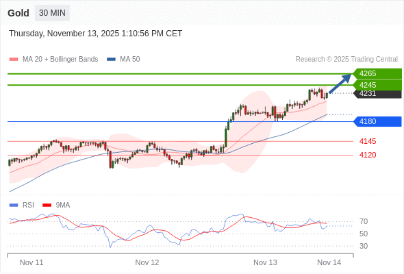 在 4180 之上,看涨,目标价位为 4245 ,然后为 4265 。