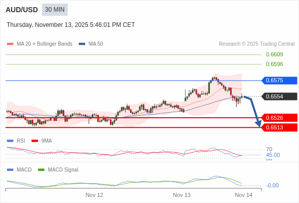 澳元/美元 当日内 : 看跌,在 0.6575 之下。