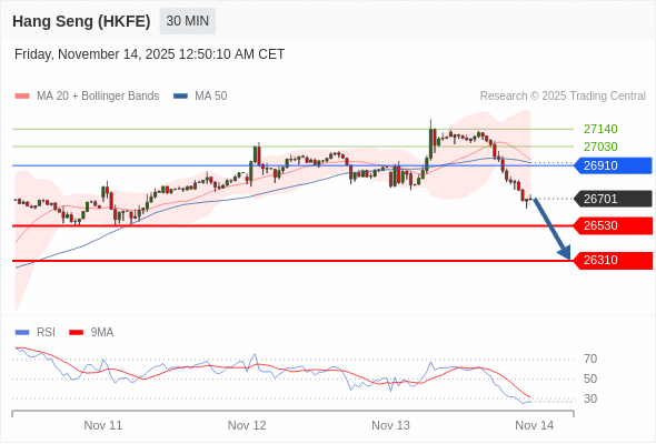 在 26910 之下,看跌,目标价位为 26530 ,然后为 26310 。