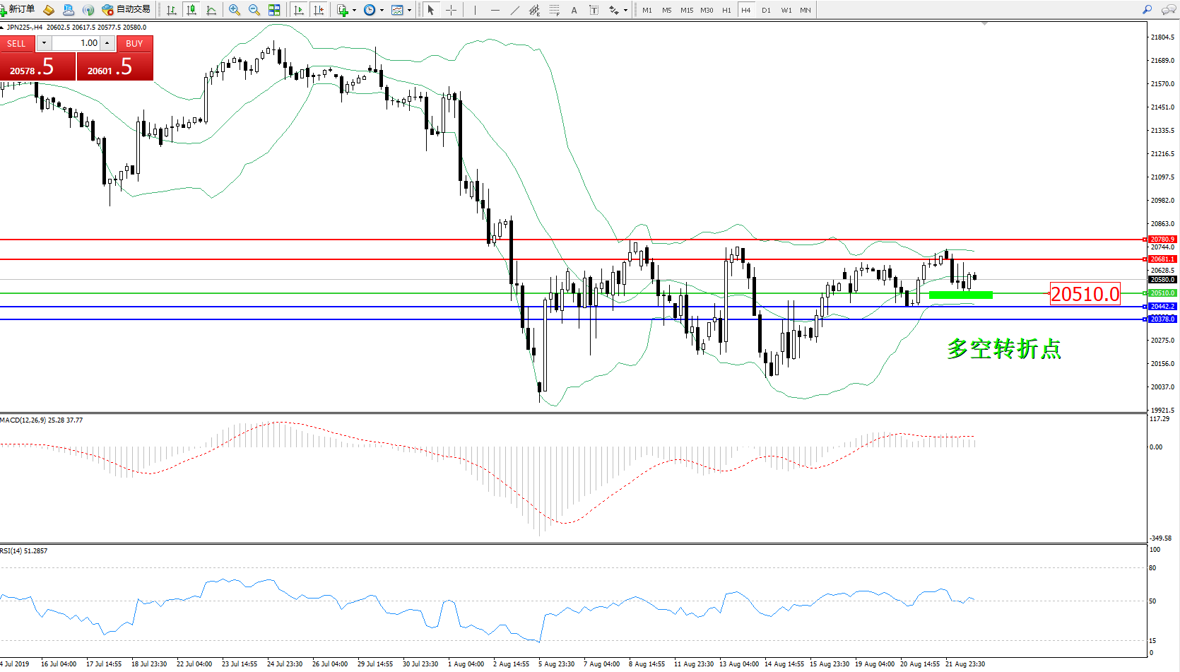 日经225指数822日(周四)收盘下跌4.57点,跌幅0.02%,报20614.00点。商业调查显示,日本8月制造业活动连续第四个月萎缩,因出口订单下滑步伐加大。但日本服务业活动扩张速度为将近两年来最高,暗示国内需求强韧,继续在抵消日本经济受到的一些外部强大压力;经季节调整的8Jibun银行制造业采购经理人指数(PMI)初值微升至49.5,高于前月终值49.4,但仍连续第四个月低于50的荣枯分水岭。 制造业产出和整体新订单再度呈现萎缩,不过萎缩程度较7月略为温和;PMI报告的其他重要活动指标则表现错综。就业扩张,企业未交货订单指标升至八个月高点,但仍处于萎缩区域;另一份调查显示日本服务业活动扩张,帮助提振了综合PMI指数。