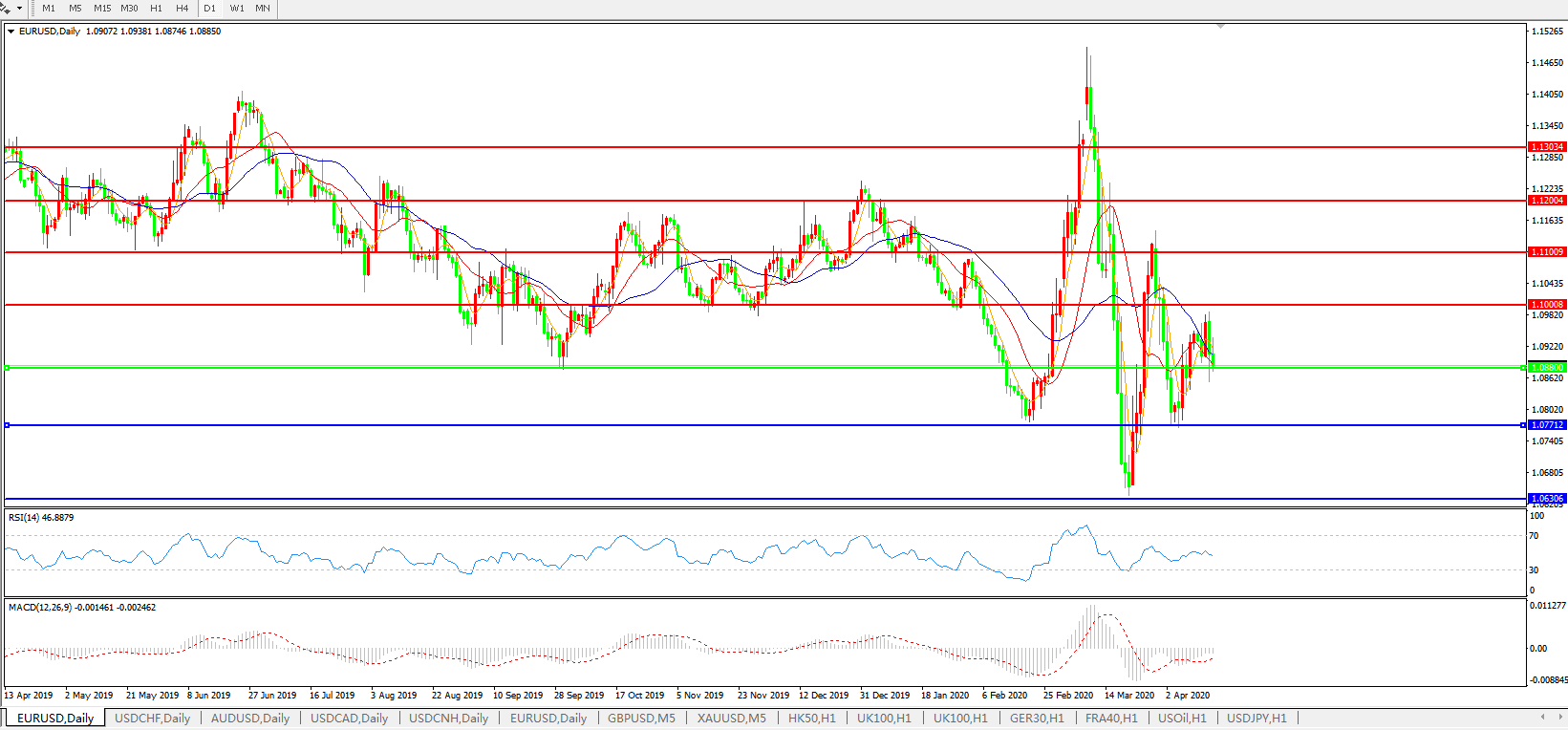 欧元兑美元EURUSD   日线图: