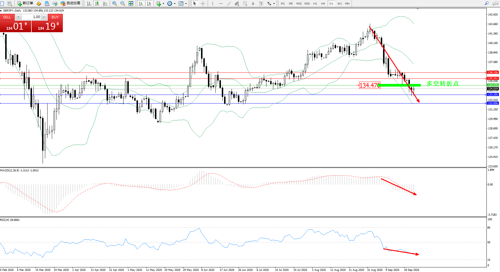 交易策略:134.470下方看跌,目标133.205、132.056