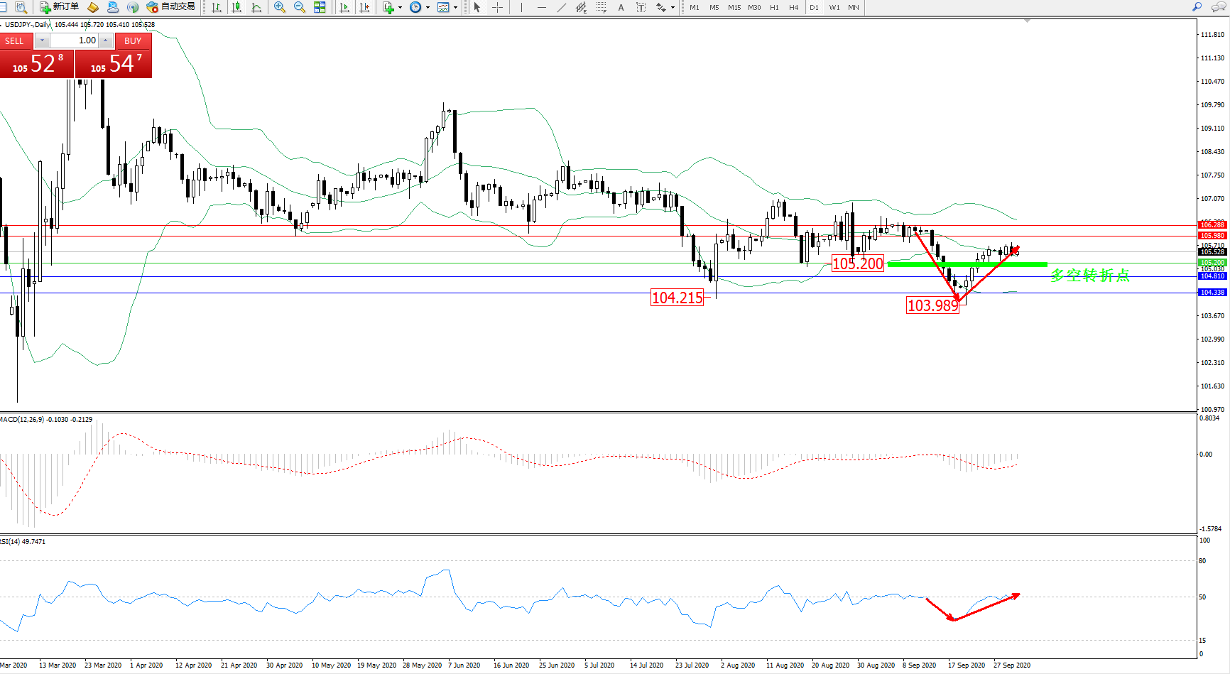 美元兑日元上涨至多0.2%至105.73,日内美元回落,但市场风险偏好回暖,美元大选的不确定性将进一步凸显,这将令更多寻求避险的资金流向日元而非美元资产市场,令两者的走势出现分化,而之后美国大选潜在的计票纷争则可能令美元更加承压。因此短线来看,美元兑日元汇价仍有下行空间,年底或下探至103.50区间。美国高企的财政赤字,而通胀平淡,本周市场的一大焦点是周五的非农数据,近期的一些消息,包括迪士尼裁员等,都表明了美国就业市场面临着很大的困难;美国大选后包括英国脱欧、全球经济压力、全球贸易争端以及疫情等问题将继续为市场带来波动率。