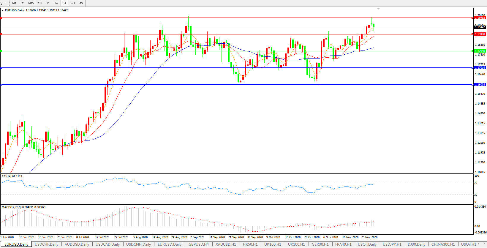欧元兑美元EURUSD   日线图: