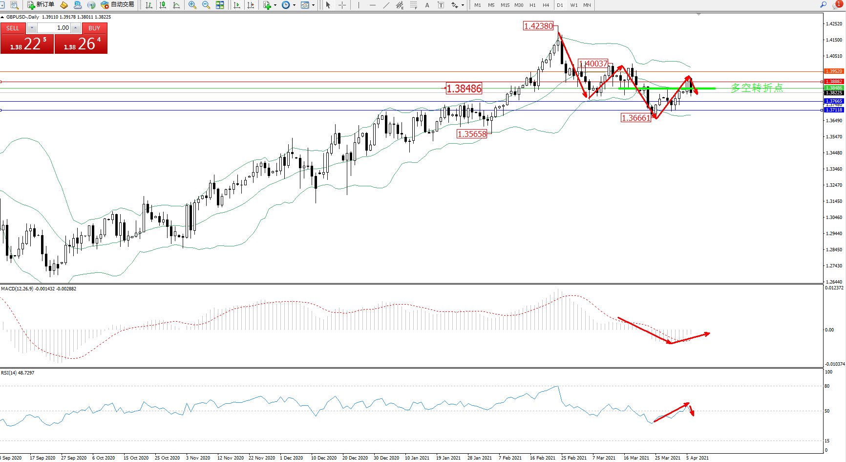 交易策略:1.38486下方看跌,目标1.37665、1.37118
