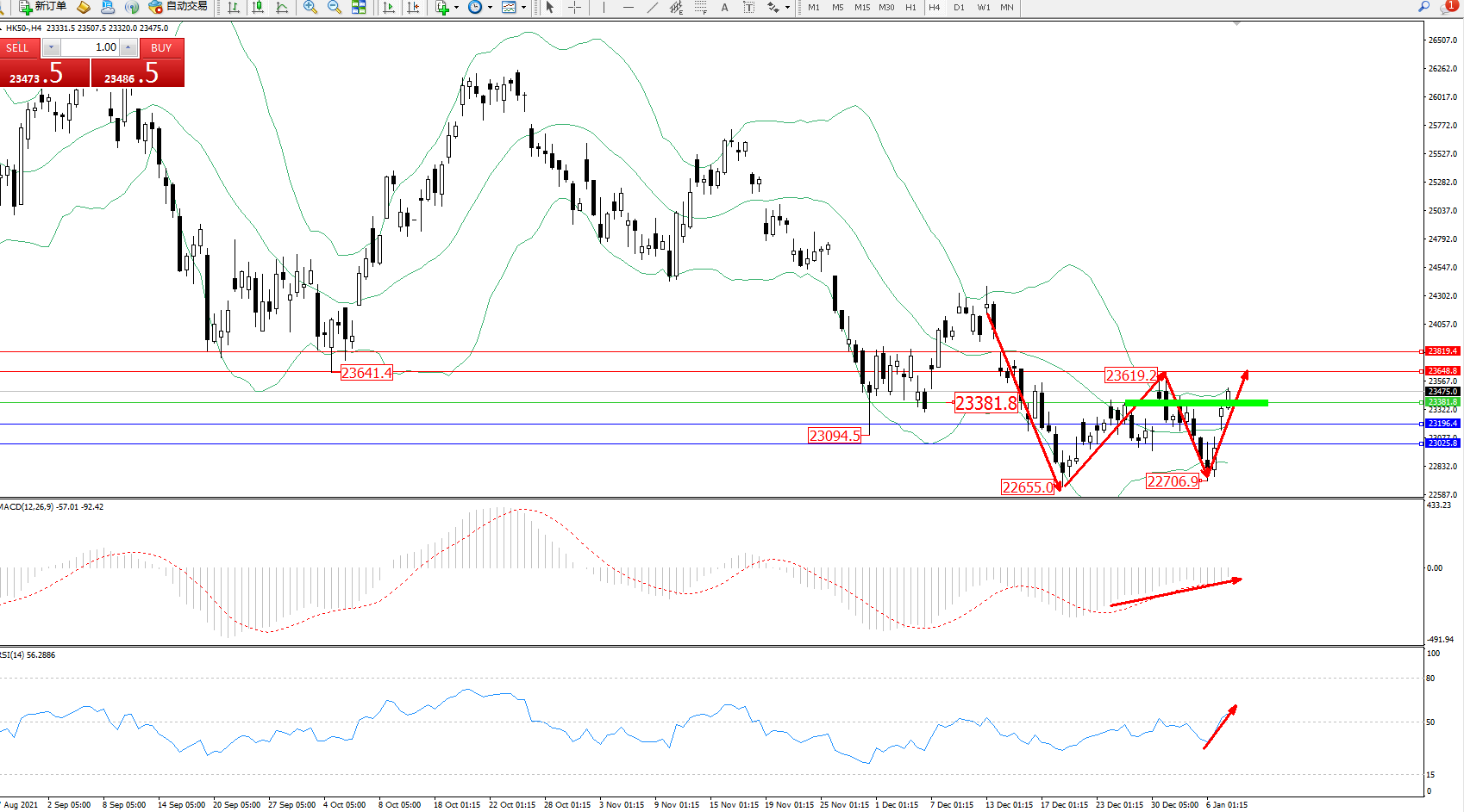 香港恒生指数1月7日(周五)收盘上涨420.52点,涨幅1.82%,报23493.38点;港股主要指数呈单边上涨行情,科技股延续反弹,引领大市上扬。恒生科技指数涨1.99%。阿里巴巴再度涨6.45%,两日反弹近12%,百度、京东、快手涨超4%,腾讯涨1.37%;多重利好叠加。港交所去年11月谘询市场推行衍生产品假期交易,令非港元计价产品可在香港公众假期交易,以免投资者在相关资产市场可交易时无法使用港交所衍生产品。港交所最新公布谘询总结和最终营运安排,拟在市场准备就绪及获监管机构批准后,期望2月底作市场准备测试,4月复活节假期前正式实施衍生产品假期交易。港交所表示,计划分批将其旗下的非港元计价期货及期权纳入假期交易,而所有港交所MSCI期货及期权合约将是首批纳入的产品,包括去年推出的A股期货“MSCI中国A50互联互通(美元)指数期货”,汇率产品、商品衍生品暂不在假期交易安排内。