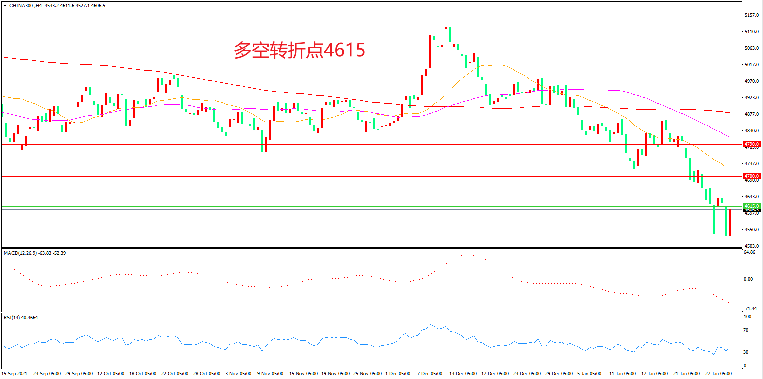 4小时图看,沪深300探底回升,区间震荡迹象明显,均线系统仍呈空头排列, MACD绿柱缩短,RSI指标走平,日内震荡下行概率较大。