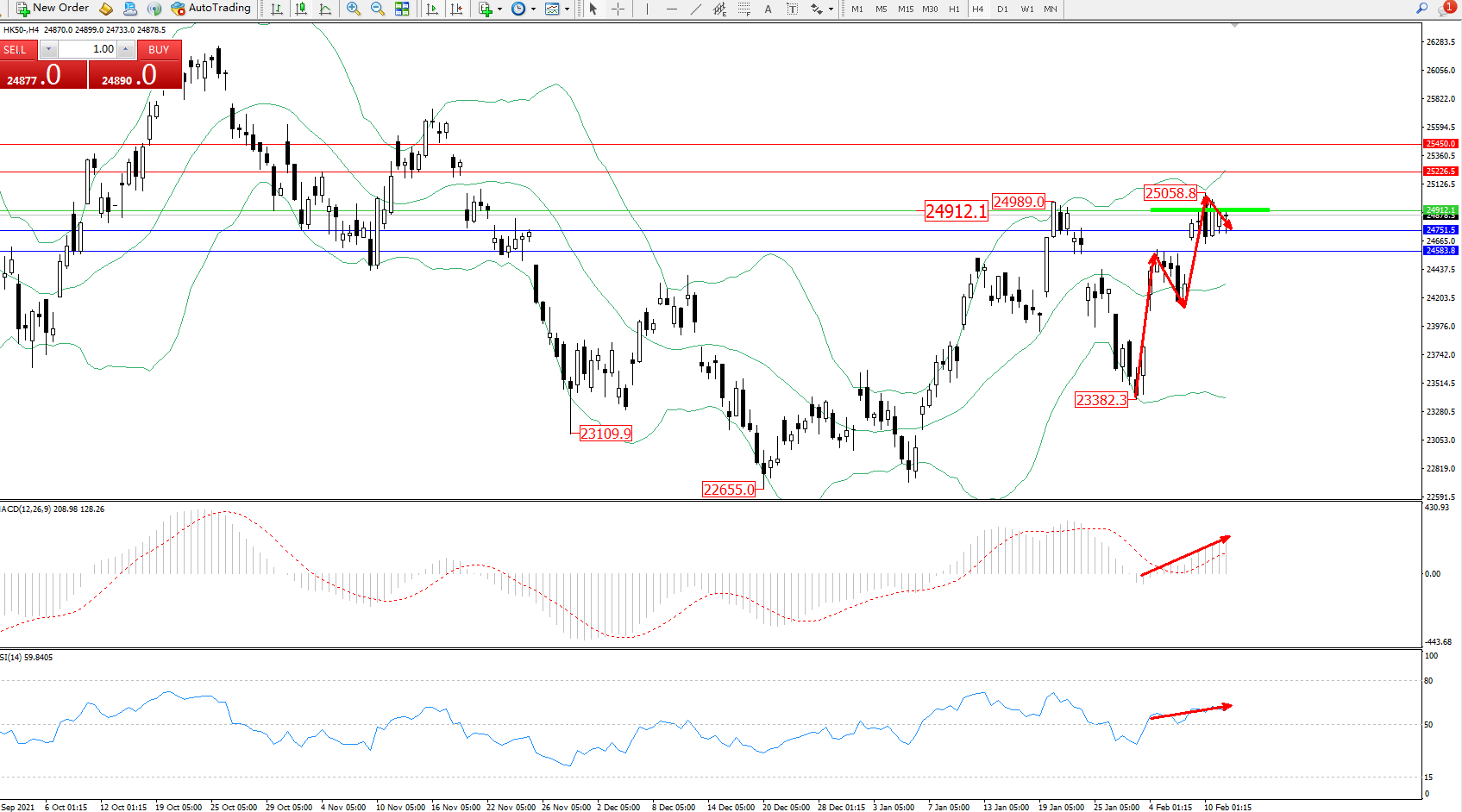 技术点评:多头动力呈阶梯式震荡上扬,高位触及布林带指标上轨25058附近节点后短期震荡,布林带指标呈缓慢张口走势持续中,MACD指标处于多头区域维持整理缓慢上移中,RSI指标处于50均衡线上側不断整理徘徊中;