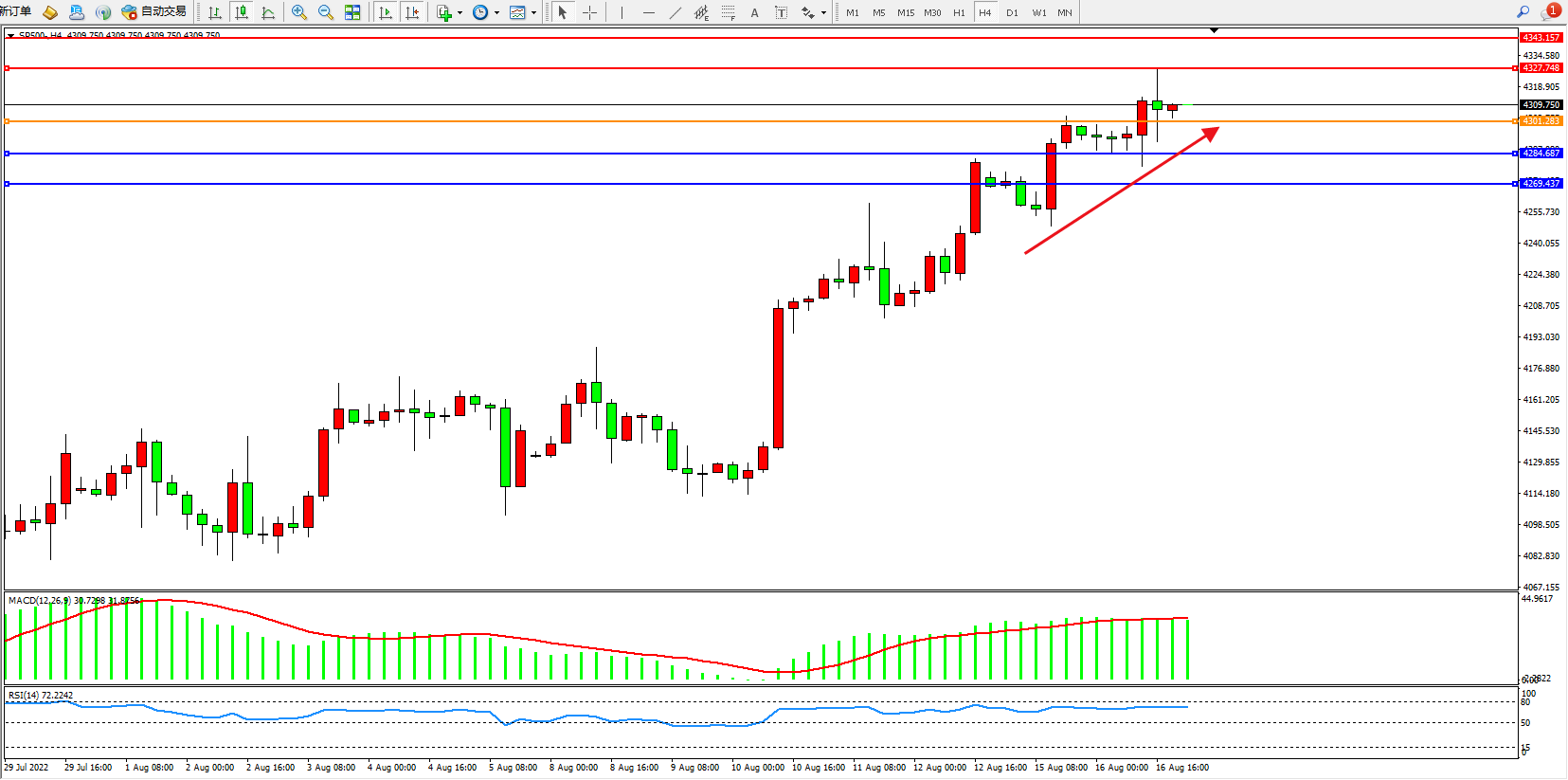 标普500指数8月16日(周二)收盘上涨7.98点,涨幅0.19%,报4305.12点;六周来标普500指数12%的反弹主要归功于公司盈利的改善,原本预期的灾难般的景象并没有在财报中出现,通过对消费者提价,商家保住了利润率。