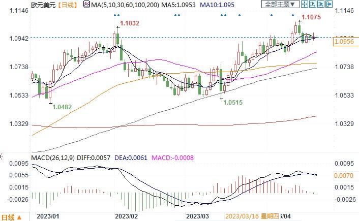 欧元兑美元日线图北京时间4月21日14:13,欧元兑美元报1.0955/56