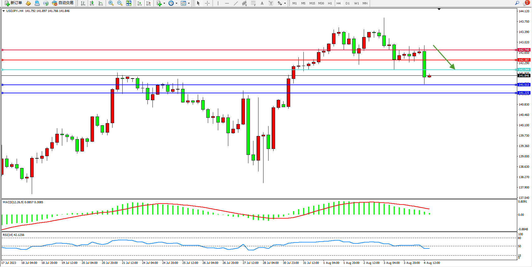 美元兑日圆维持141.846附近震荡,日本债务负担沉重,当局对利率升得太高持谨慎态度,因为这可能对经济产生负面影响。因此,日圆有可能继续贬值。